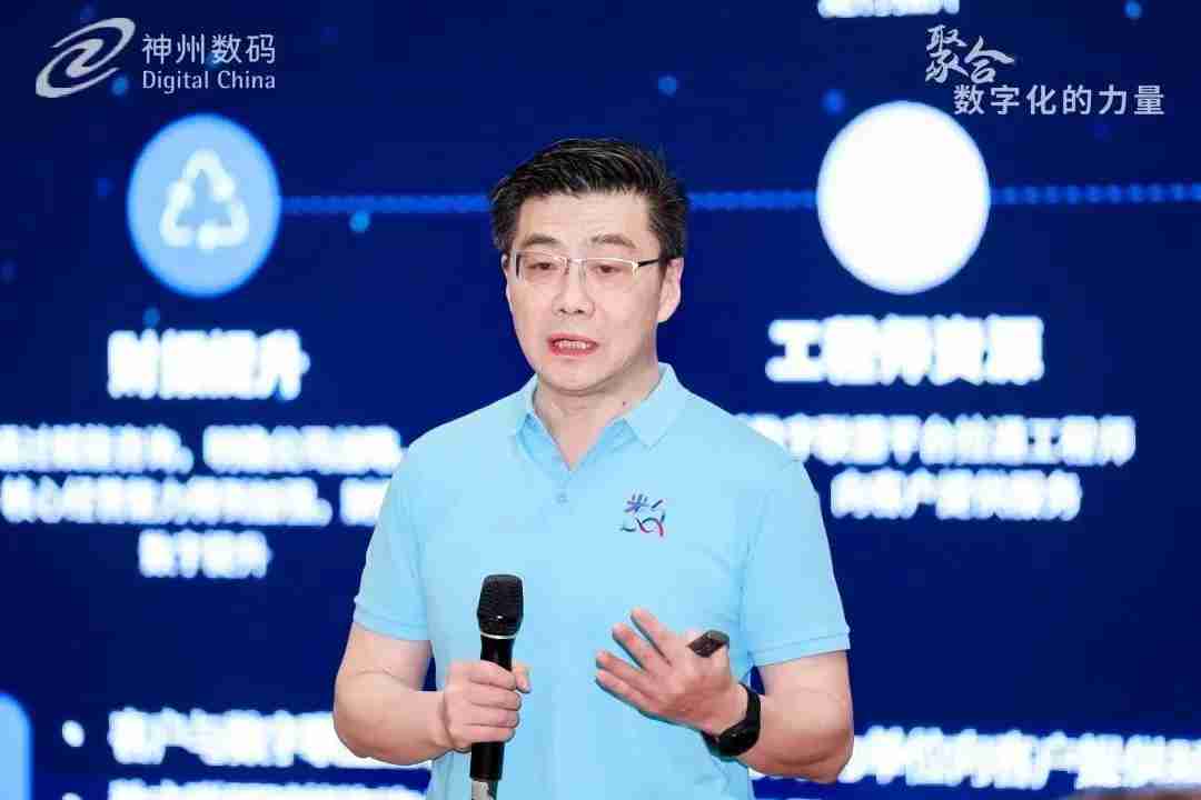 他在演讲中谈到:数云融合是经济发展的趋势,,尊龙集团数码与全球领先科技企业多维度合作,,,加速培育超高速度、、超大规模、、、、超广连接的全新数字产业和技术生态。。与中国信息化进程同行,,,构建国内最大覆盖全地域全行业的B2B营销生态网络。。。成立数字中国服务联盟,,连接合作伙伴,,,共建共享繁荣生态。。